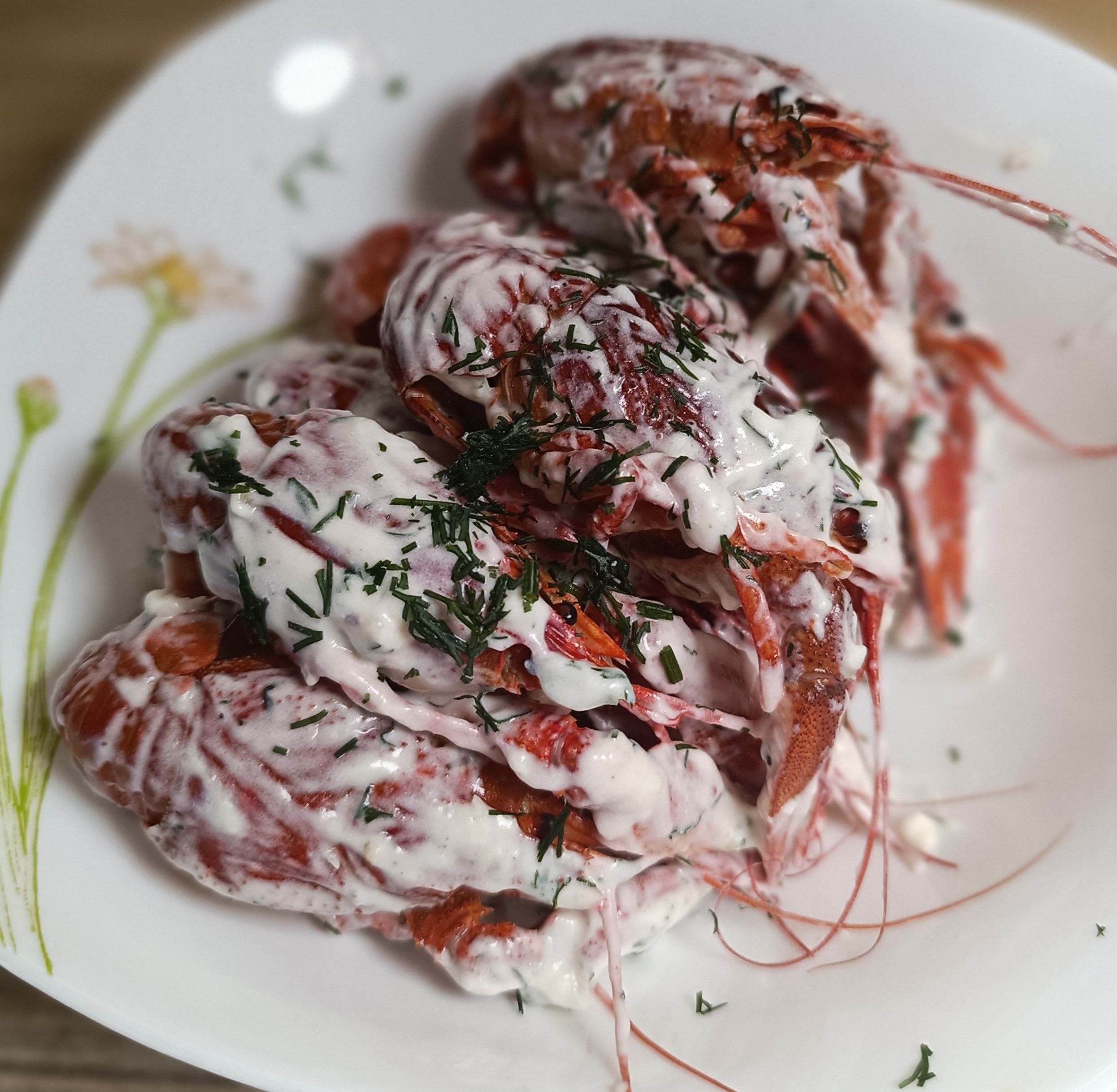 Волжские раки особо крупного размера, от 80 до 140 гр/шт. в живом весе, приготовленные по-казачьи, в сметанно-чесночном соусе. Для приготовления порции берем 1 кг живых раков. Количество раков в порции 10 шт.
